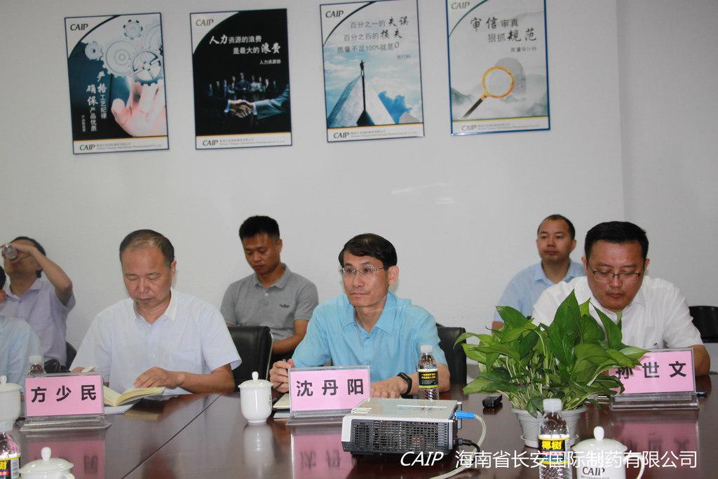 4月9日上午,海南省副省長沈丹陽、孫世文副秘書長、方少民副秘書長、海口市副市長馮鴻浩、海南省工業和信息化廳巡視員廖強等一行領導蒞臨海南長安國際制藥有限公司進行調研走訪。