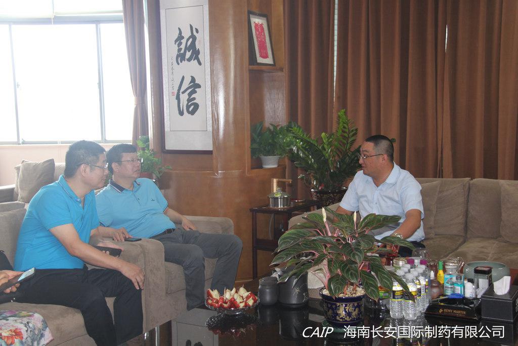 5月14日上午,海南省醫(yī)藥行業(yè)協(xié)會相關(guān)領(lǐng)導(dǎo)在協(xié)會會長陳益智帶領(lǐng)下,蒞臨海南長安國際制藥有限公司走訪調(diào)研(同行人員:舒小斌常務(wù)副會長、郭澤超副會長、魯紅秘書長、章志賢副會長、呂銘浩副會長、李亞男副秘書長等),總經(jīng)理汪立冬代表長安制藥與陳益智會長一行領(lǐng)導(dǎo)進(jìn)行交流。