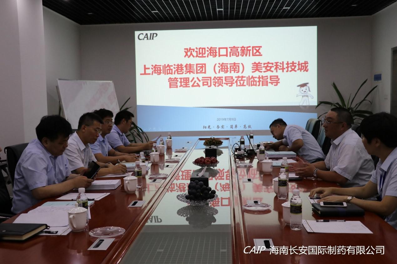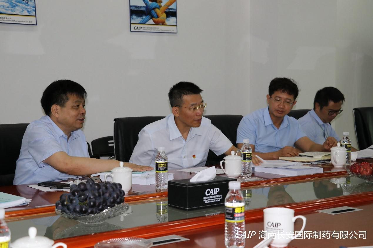 7月9日上午,海口高新區(qū)上海臨港集團(tuán)(海南)美安科技城管理公司孫貴華董事長、??诟咝聟^(qū)管委會韓寶富副主任、海口高新區(qū)管委會招商局徐吉局長等一行領(lǐng)導(dǎo)蒞臨海南長安國際制藥有限公司調(diào)研交流,公司汪立冬總經(jīng)理出席交流。
