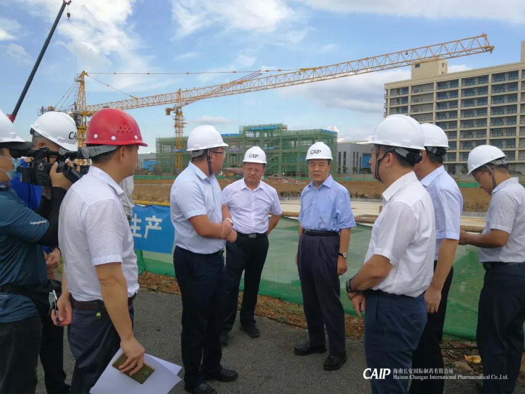 7月22日下午,海南省委常委、常務副省長毛超峰率調研組到長安制藥美安科技新城新廠建設項目調研項目建設推進情況。海口市委常委、副市長鞠磊,省發改委、工信廳、住建廳等相關單位領導及高新區管委會主任劉立武等一同參加調研活動,海南長安制藥總經理汪立冬陪同調研組并詳細介紹美安新廠項目建設情況。