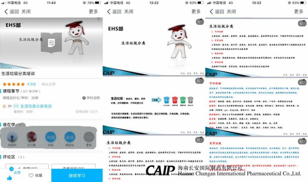 當(dāng)天,長安制藥還通過網(wǎng)上益佰云學(xué)院對全體員工進(jìn)行了“生活垃圾分類”的在線培訓(xùn),確保廣泛深入、全面系統(tǒng)的對員工了解并熟知生活垃圾四分類原則、垃圾投放要求、垃圾收運(yùn)過程、全公司分類垃圾桶設(shè)置等。